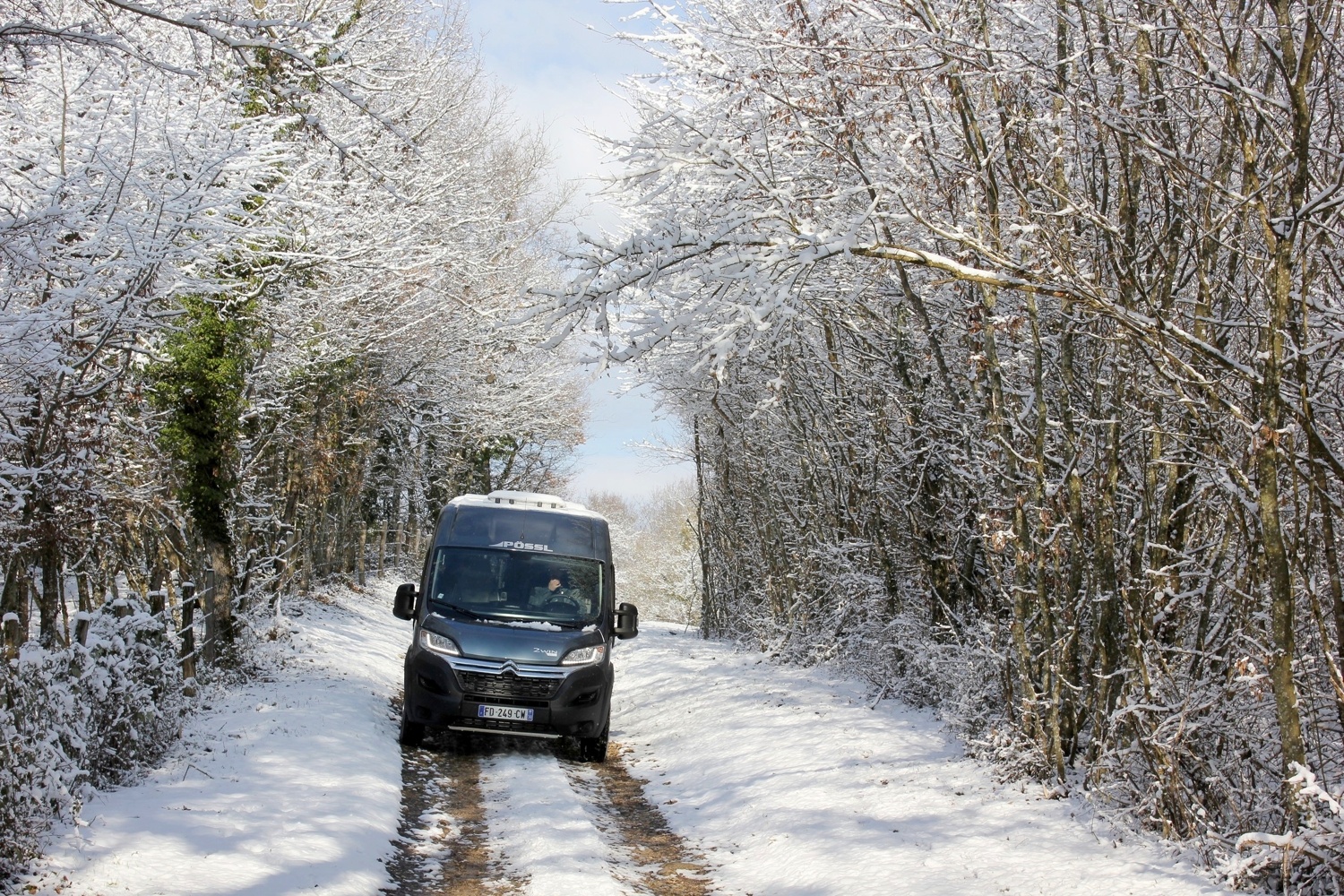 Notre fourgon aménagé est le compagnon idéal des personnes à la recherche de nature et d'aventure. Ce véhicule est équipé de la célèbre motricité renforcée de Poclain. Réhaussé, monté en pneus 4 saisons neige + tout terrain, il permet de concilier confort de conduite et sécurité sur route glissantes et enneigées, mais aussi sur tous les types de chemins, en été comme en hiver.
