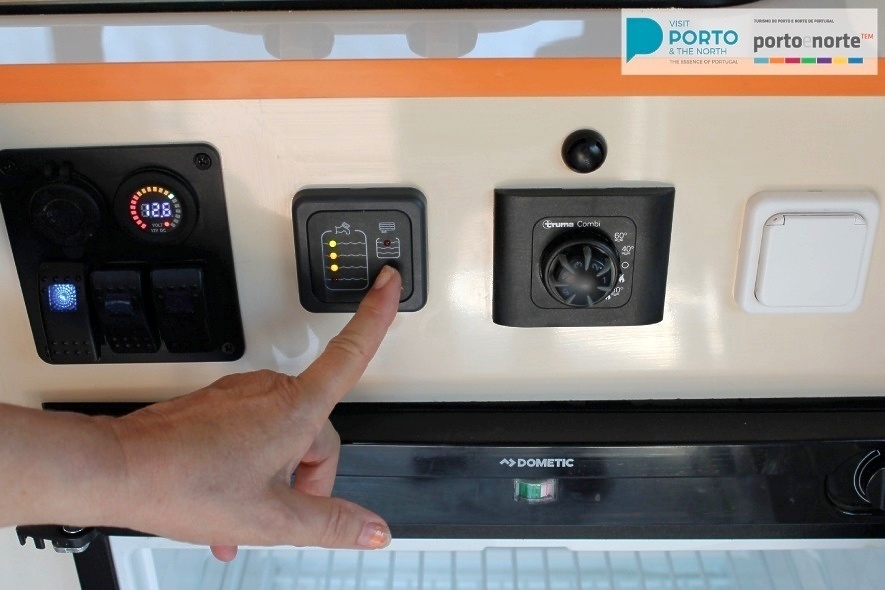 O painel solar que encontrará no tejadilho carrega a segunda bateria da van, tornando-a autónoma em termos elétricos. Além da nossa vontade de que se sinta quente e confortável durante toda a viagem, tentamos dar o nosso contributo para a sustentabilidade do planeta. Green thumbs up!