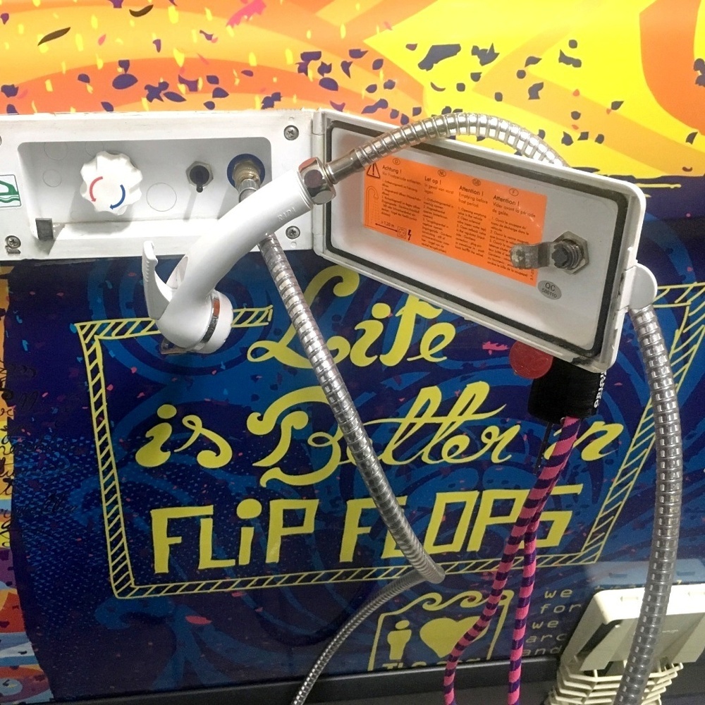 O interruptor de água quente controla a torneira do lava-loiça e do chuveiro