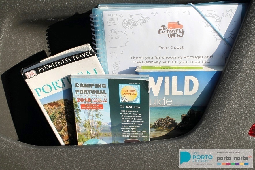 Para o ajudar a planear o seu itinerário: Pasta com sugestões de viagem Lista de parceiros (Escolas de Surf, Empresas de Aventura & Lazer, Parques de Campismo) com os seus contactos e descontos Mapa e guia de Portugal Guias de viagem do Norte de Portugal Outros guias de viagem (biblioteca para selecionar)