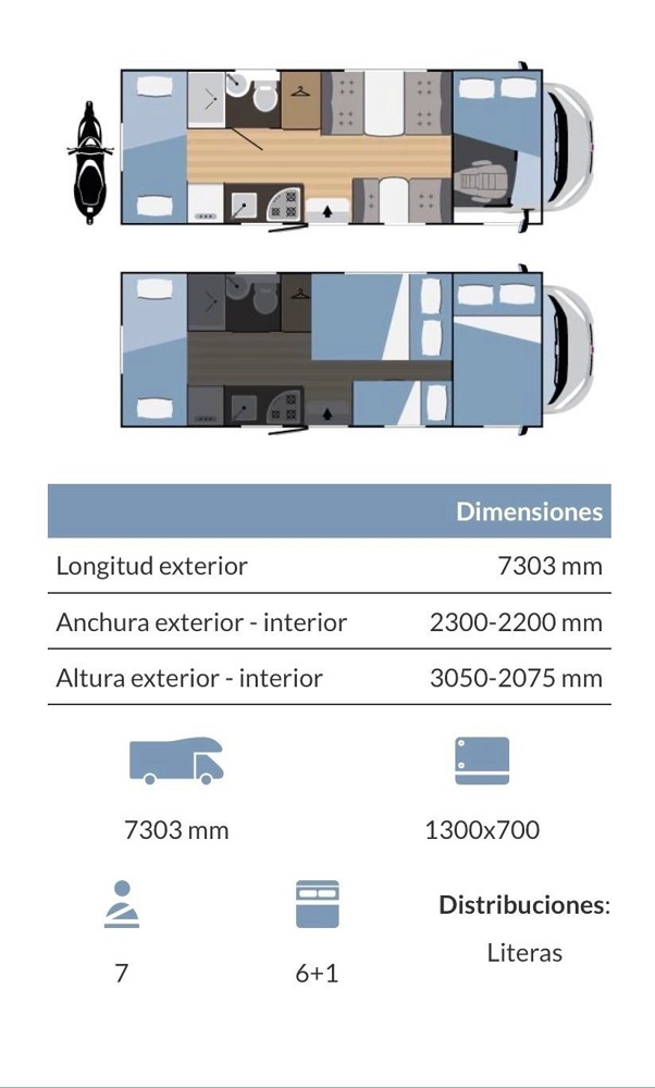 Muy equipada. Ideal para viajar en familia. 7 plazas para viajar y 7 plazas para dormir.