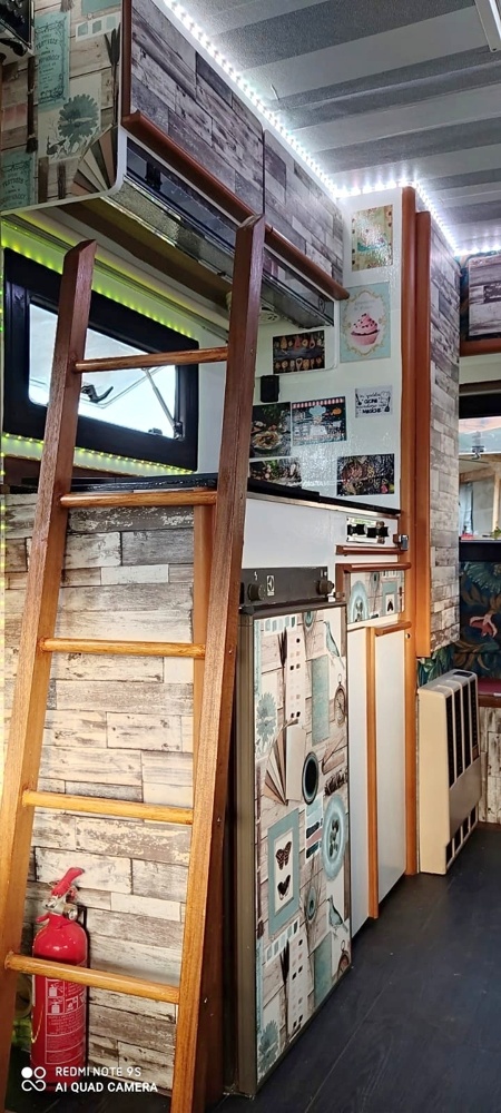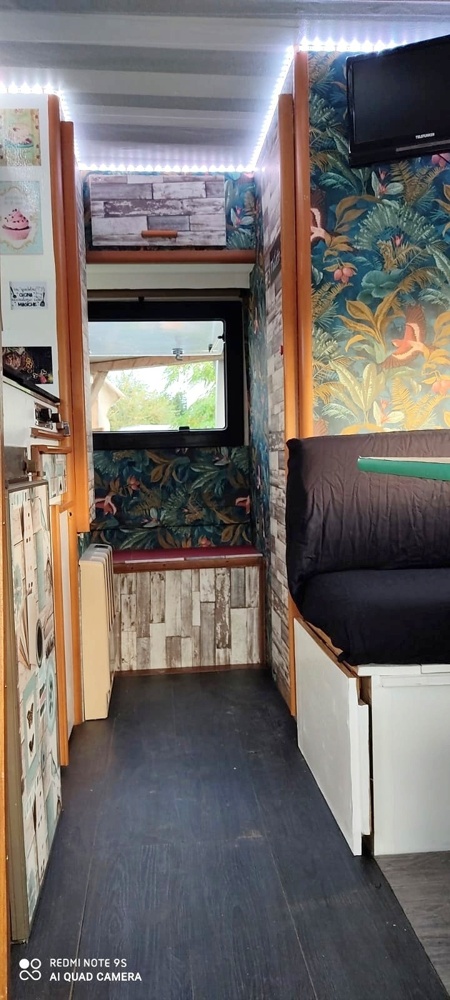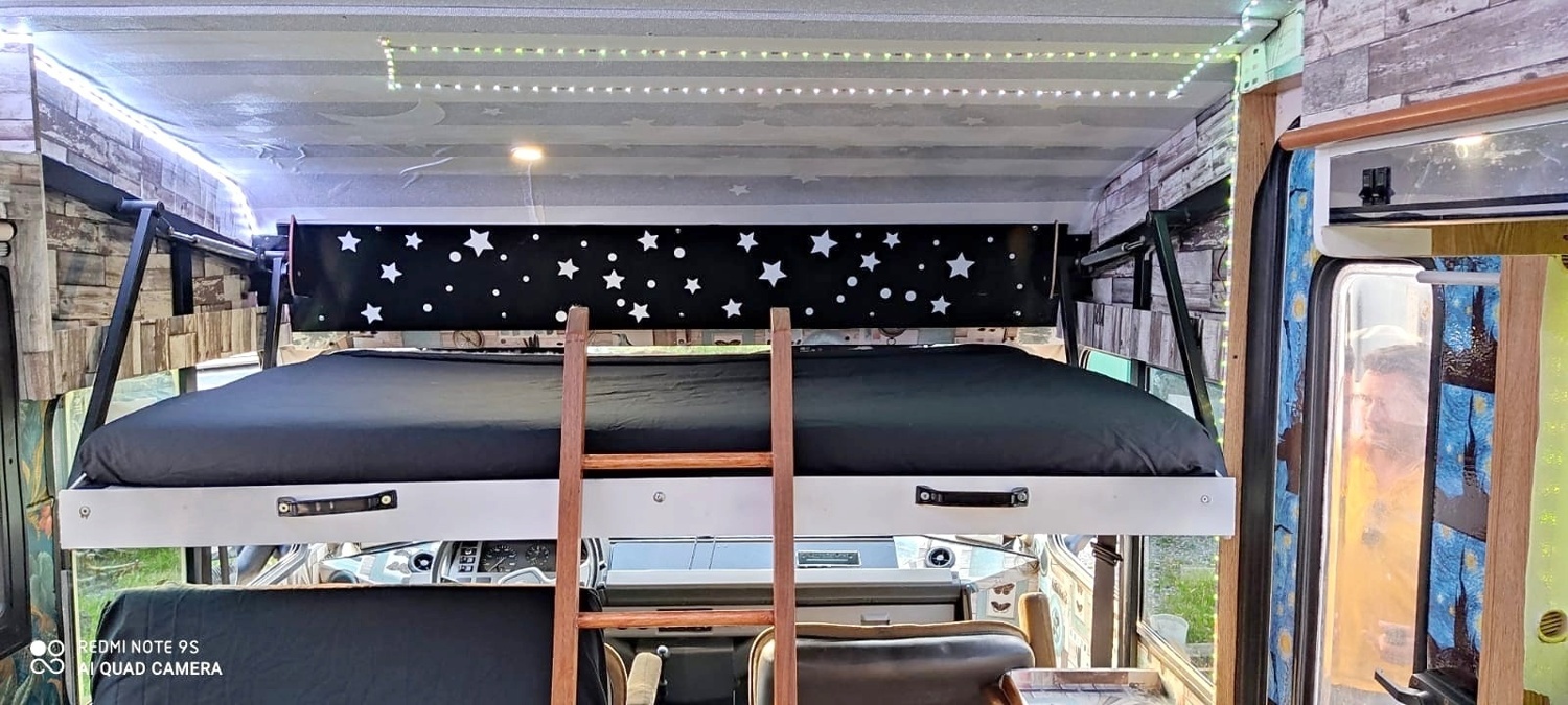 Situé à l'avant au dessus du poste de conduite et accessible via une échelle. Très confort, ce lit permet aussi de conserver de l'espace de vie.